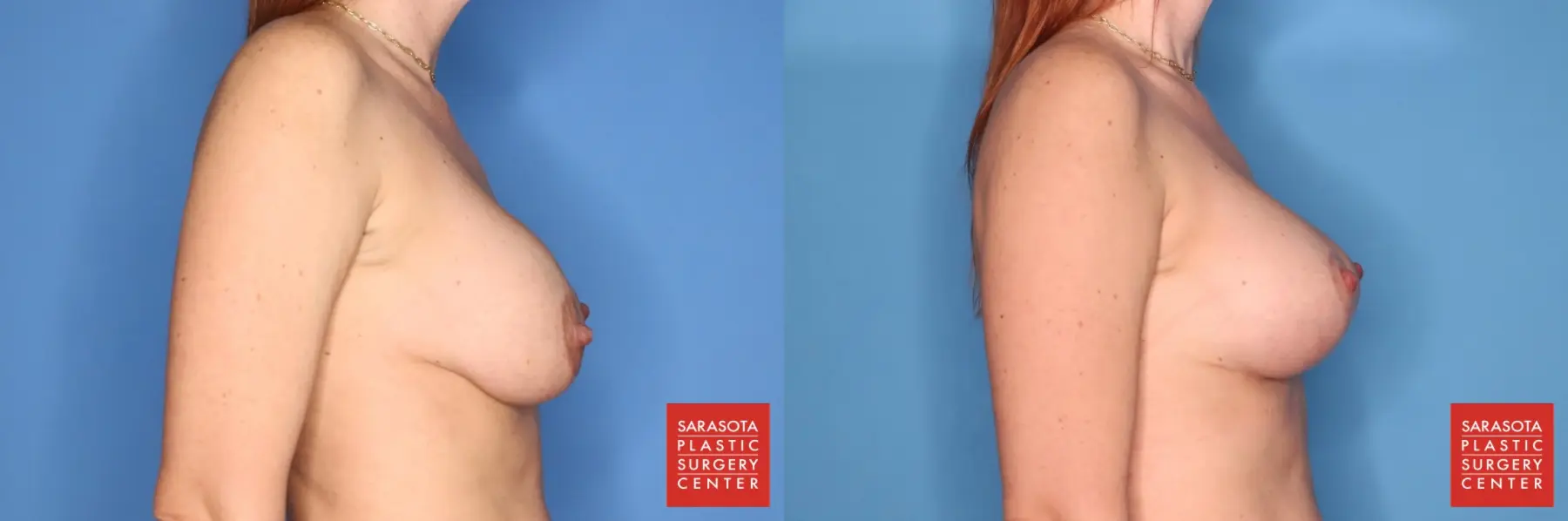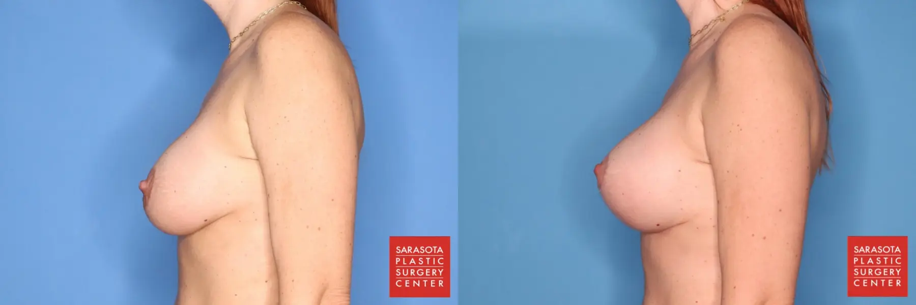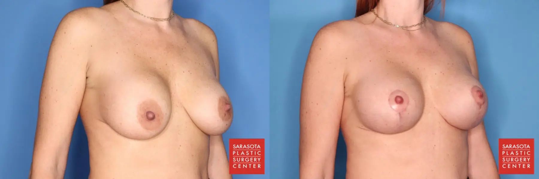 This patient is 2 months post-op following a bilateral breast augmentation and bilateral mastopexy with Motiva implants. She received 400cc on the left and 375cc on the right to enhance volume and improve symmetry. This combined procedure lifted and reshaped the breasts while restoring upper pole fullness for a more balanced, youthful contour. At this stage in her recovery, she is healing well with beautifully settling results and well-healed incisions.