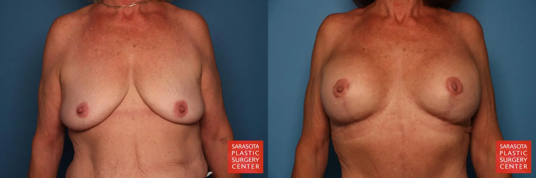 61-year-old female that lost 165lbs, through diet and exercise was unhappy with her small and droopy breasts. After consulting with Dr. Engel, the patient chose to proceed with a bilateral subpectoral breast augmentation with a breast lift using Allergan Natrelle Inspira Silicone implants Style SRM 520cc. The patients photos are only 6 months post operative so her breasts will continue to heal and settle with time. The patient is very pleased with her results.