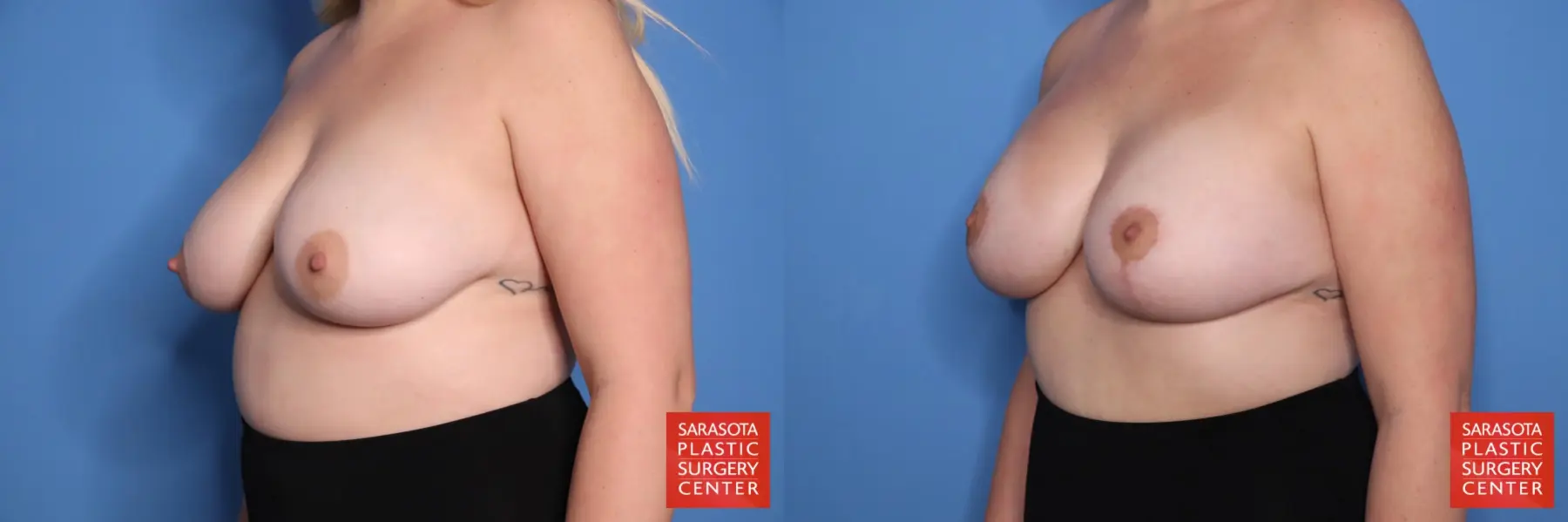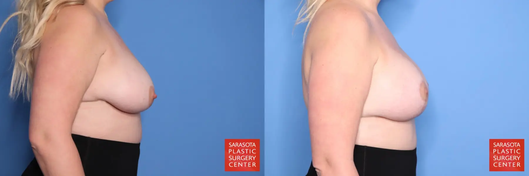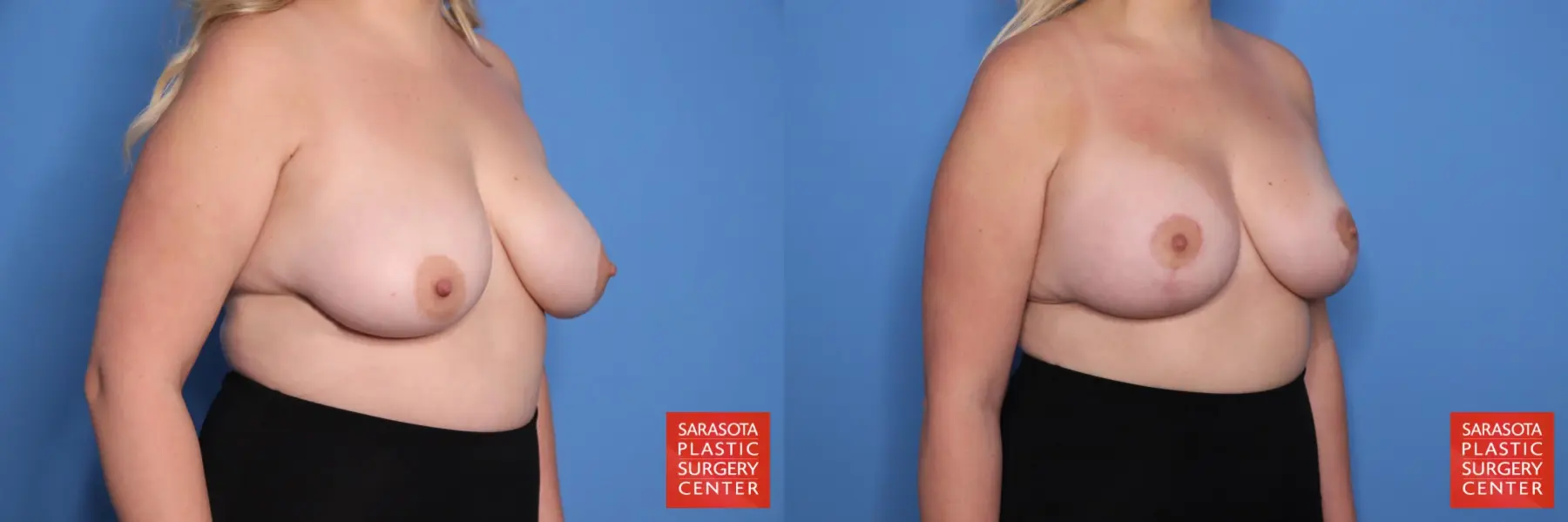 32-year-old female that was concerned with her large and droopy breasts. She chose to undergo a breast augmentation using Allergan Natrelle Cohesive gel breast implants 295cc and a breast reduction with superomedical pedicle wise pattern skin excision.