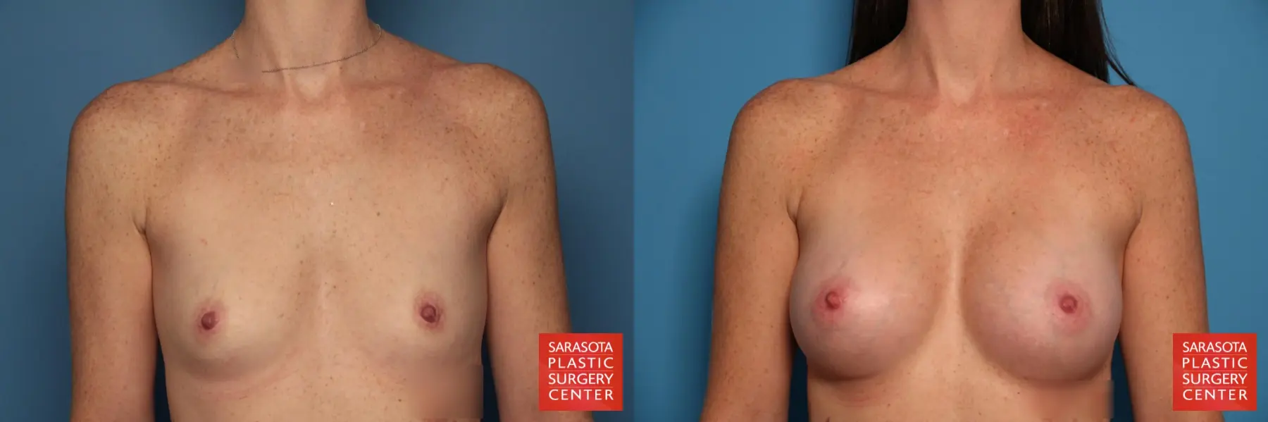 31-year-old mother of 2 that was concerned with her small breasts. She was a 34 A and desired to become a 34 CC. She chose to undergo a bilateral subpectoral breast augmentation with Natrelle 410 Anatomic Silicone implants Style FX 410cc on the left and 360 on the right placed through an inframammary incision.