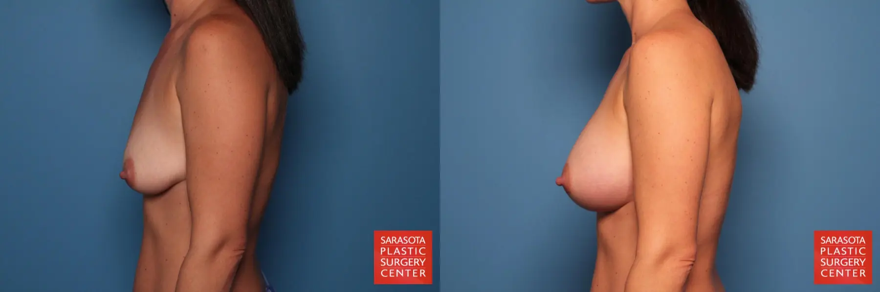 35yr old patient decided to undergo breast augmentation with silicone implants after volume loss and drooping breast. Patient is a mother of two and was wearing a 34B bra and deisred to be a 34C. She wanted to achieve a natural look and did not want a breast lift. Dr. Engel used Allergan Natrelle 410FX Highly Cohesive Anatomically shaped silicone filled 360cc breast implants placed under the muscle.