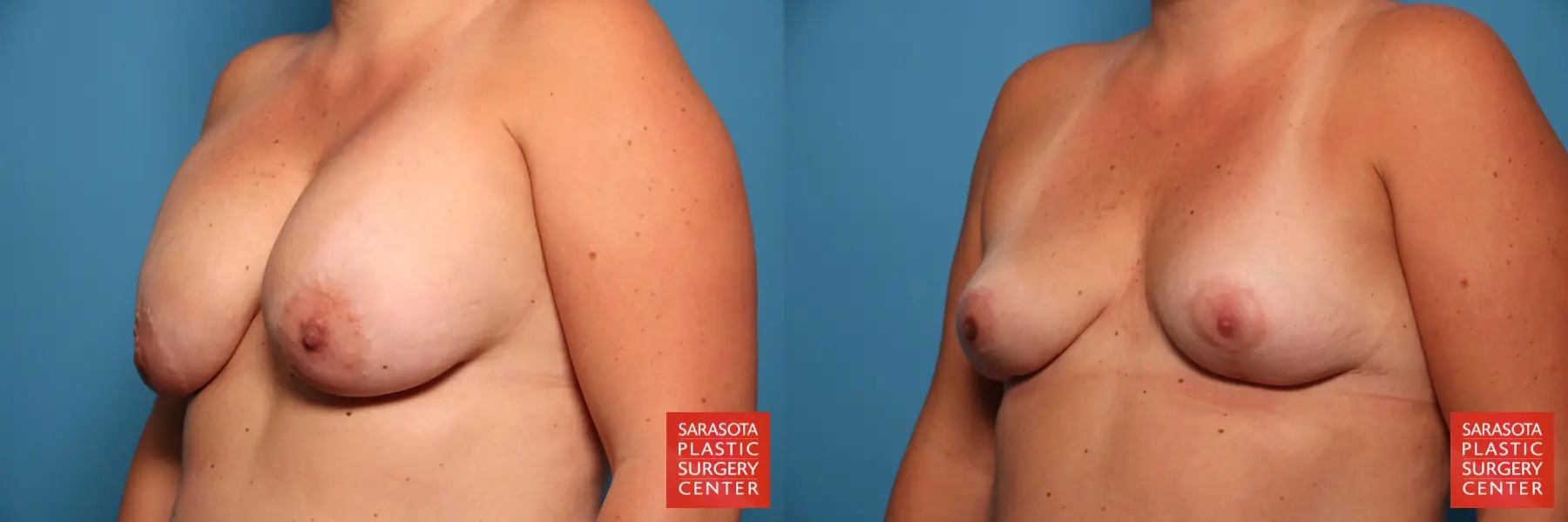 37-year-old female that had undergone a saline breast augmentation 450cc transumbilical subpectoral in 2002 with a different surgeon. Then had 4 children, breast fed them all and now felt her breasts were heavy and droopy. To address her concerns she chose to have her implants removed with a bilateral mastopexy and capsulectomies.
