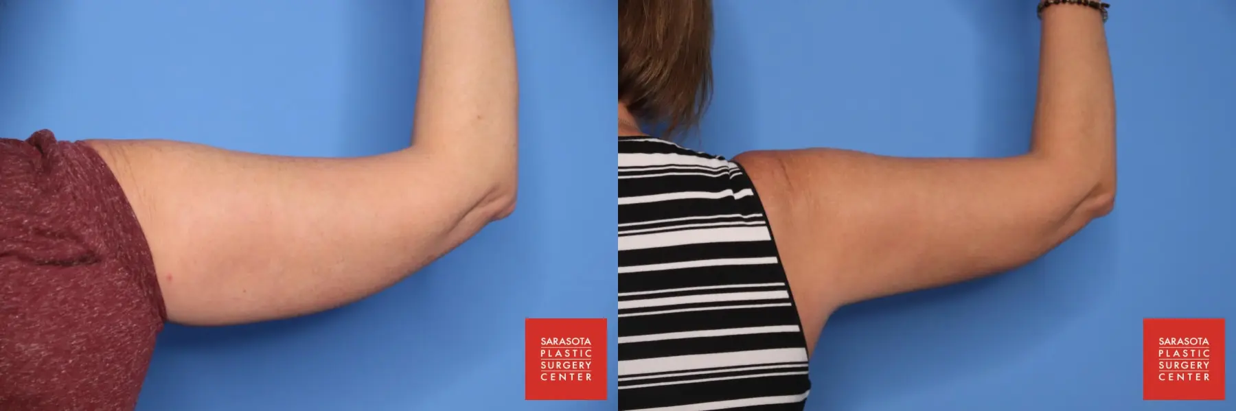 45-year-old female that was unahppy with excess fat on her arms. She chose to undergo CoolSculpting to the arms.