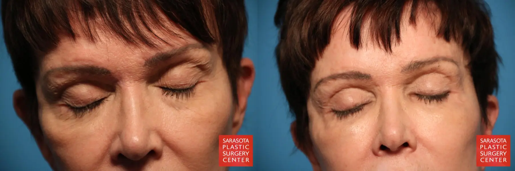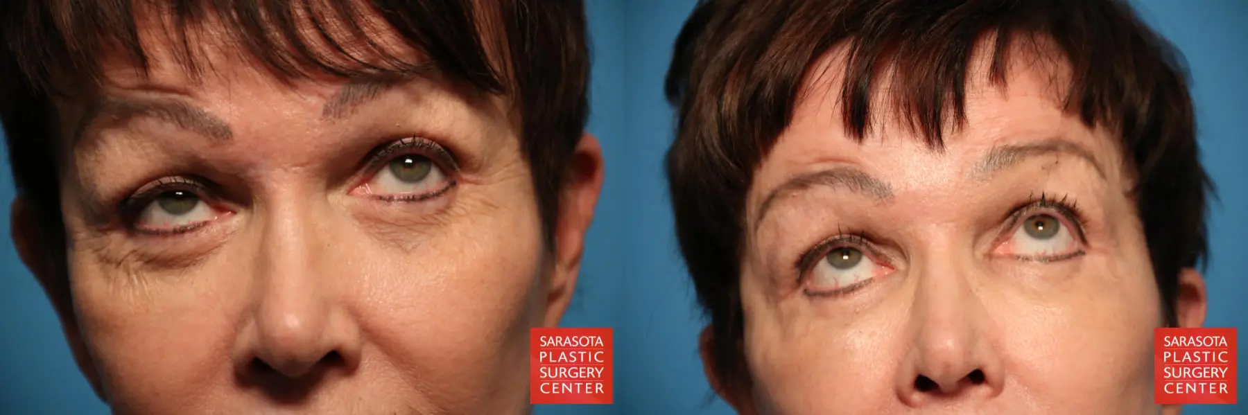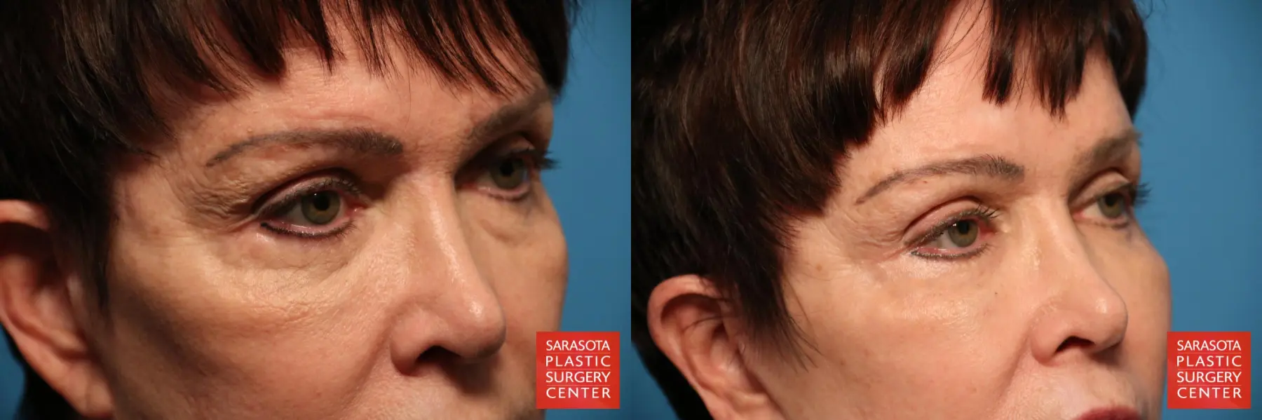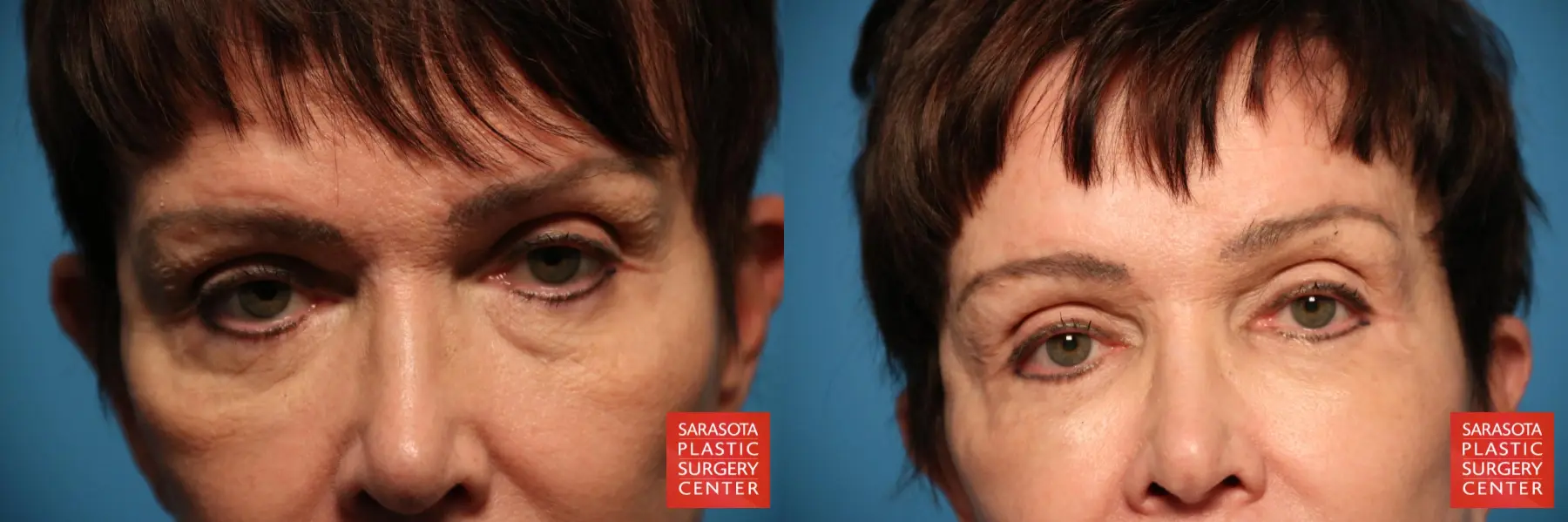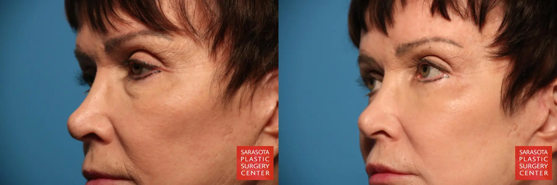 68-year-old female that was concerned with her aging face and the excess fat under her eyes. She chose to undergo a lower eyelid blepharoplasty with facial fat grafting.