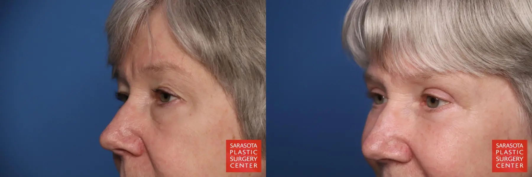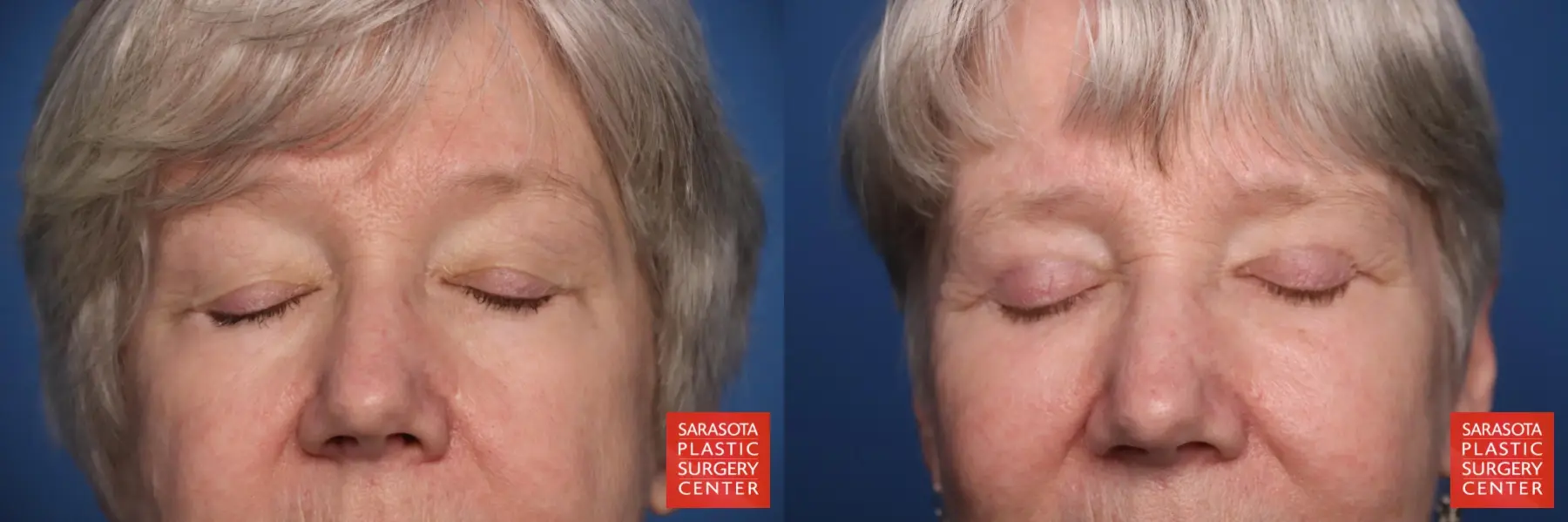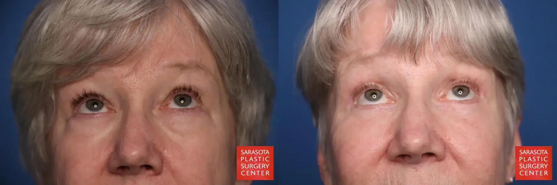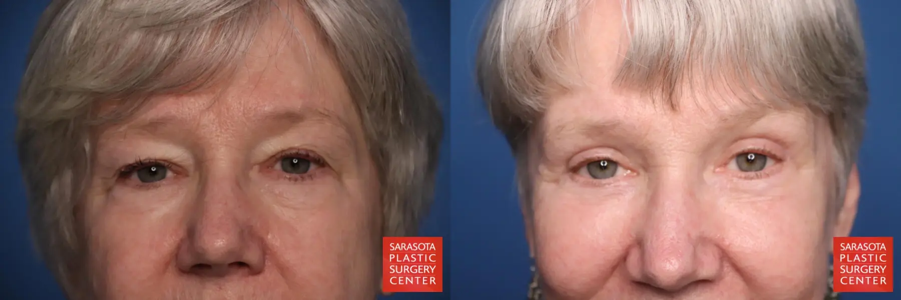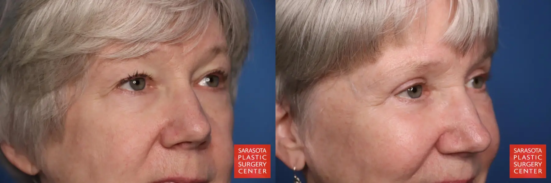 66-year-old female that was concerned with the excess skin on her upper and lower eyelids and the excess fat of her lower eyelids. She chose to undergo a bilateral upper eyelid blepharoplasty, lower eyelid blepharoplasty -Subciliary with Canthopexy and fat grafting to the face.