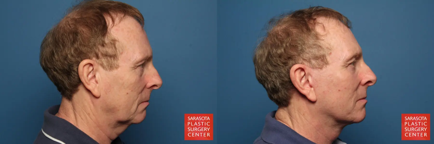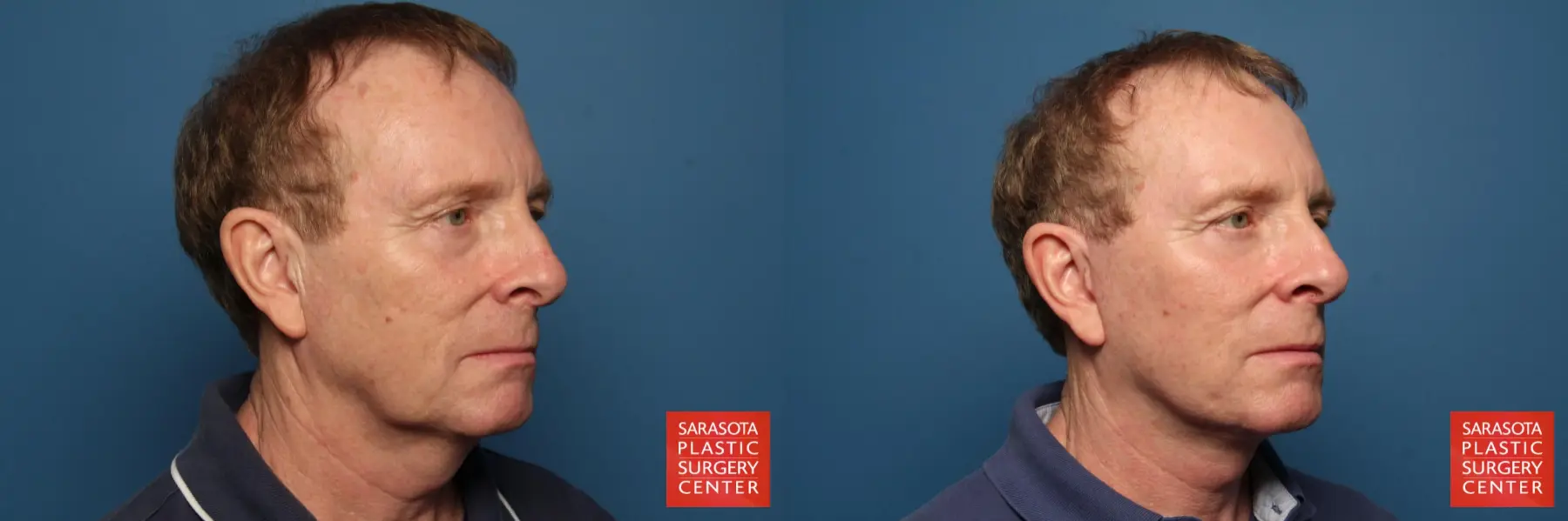 62-year-old male that was concerned with his general face and brow/periorbital. He chose to undergo a facelift, lower eyelid blepharoplasty-transconjunctival with subciliary skin excision, upper eyelid blepharoplasty and fat grafting to the cheeks and tear troughs.