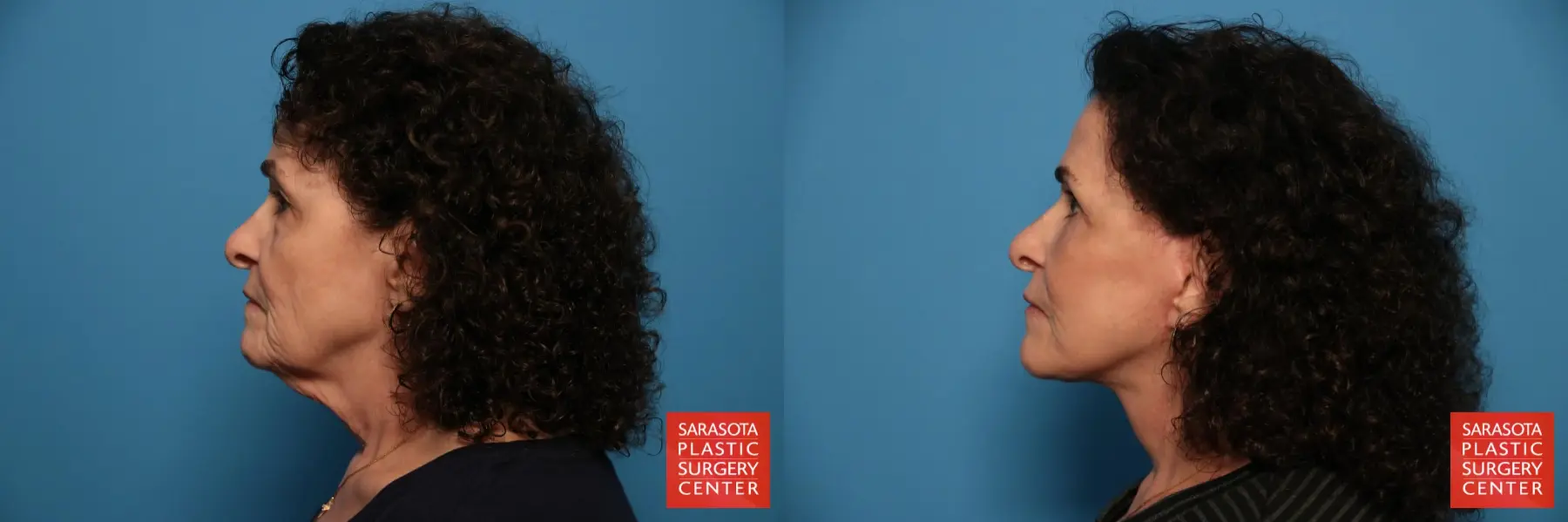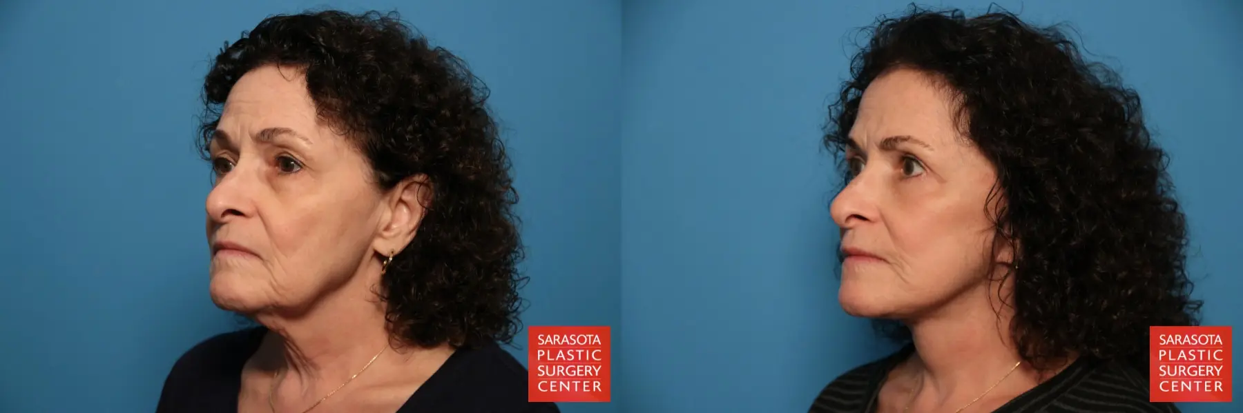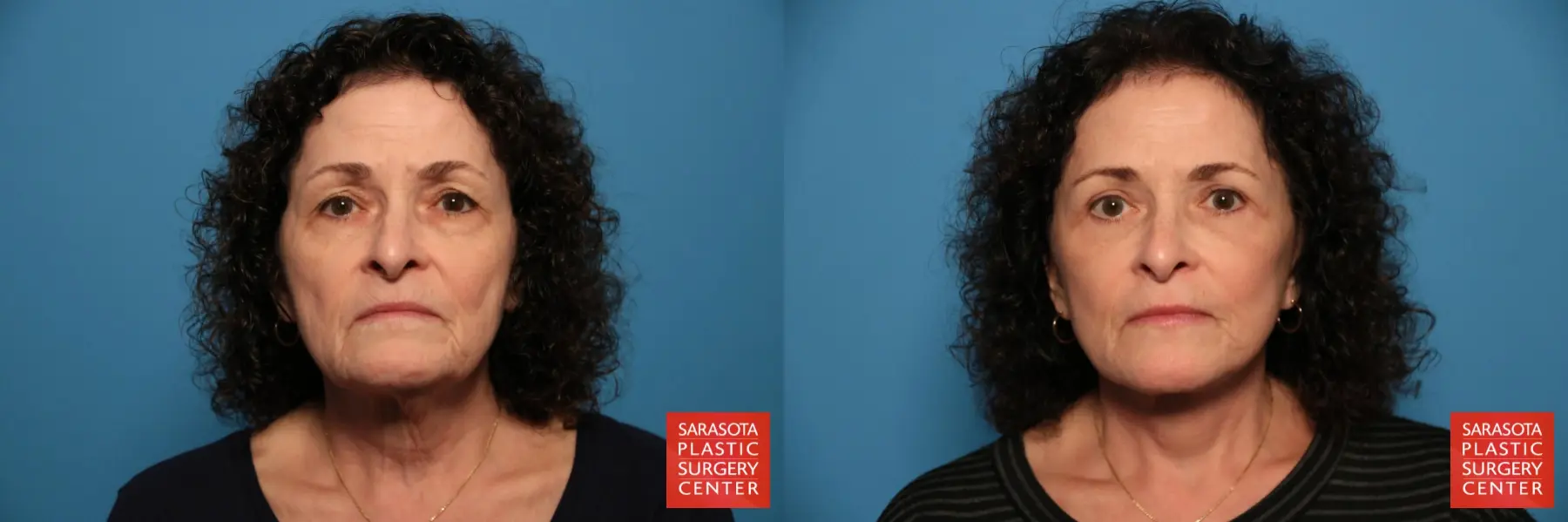 67-year-old female that was concerned with her general face, brow, periorbital and neck. Following a detailed discussion of her options the patient chose to undergo a facelift, upper and lower eyelid blepharoplasty, fat grafting to tear troughs, cheeks, nasolabial folds, marionette lines oral commissures, lips and chin.