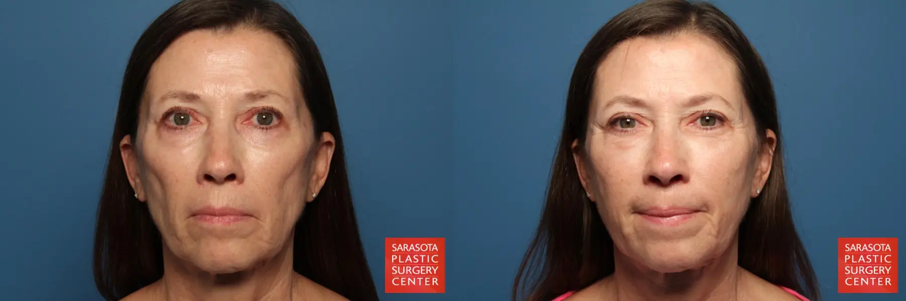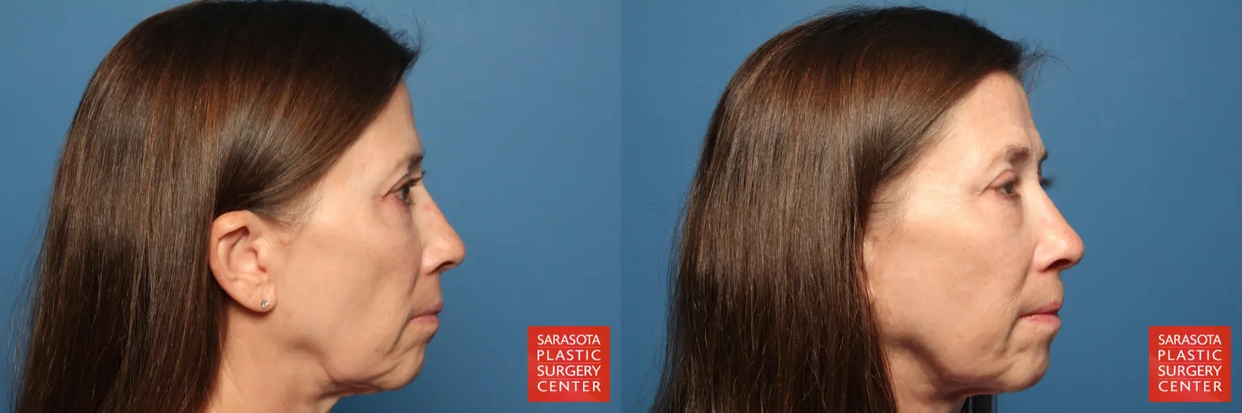 60 year old female that was concerned with her aging face chose to have Facial Fat Grafting. Fat was injected into the peri-oral, cheeks, infra-brow region, malar mounds, marionette lines, nasolabial folds, tear troughs, temples, lower eyelids, prejowl sulcus and oral commisure areas.