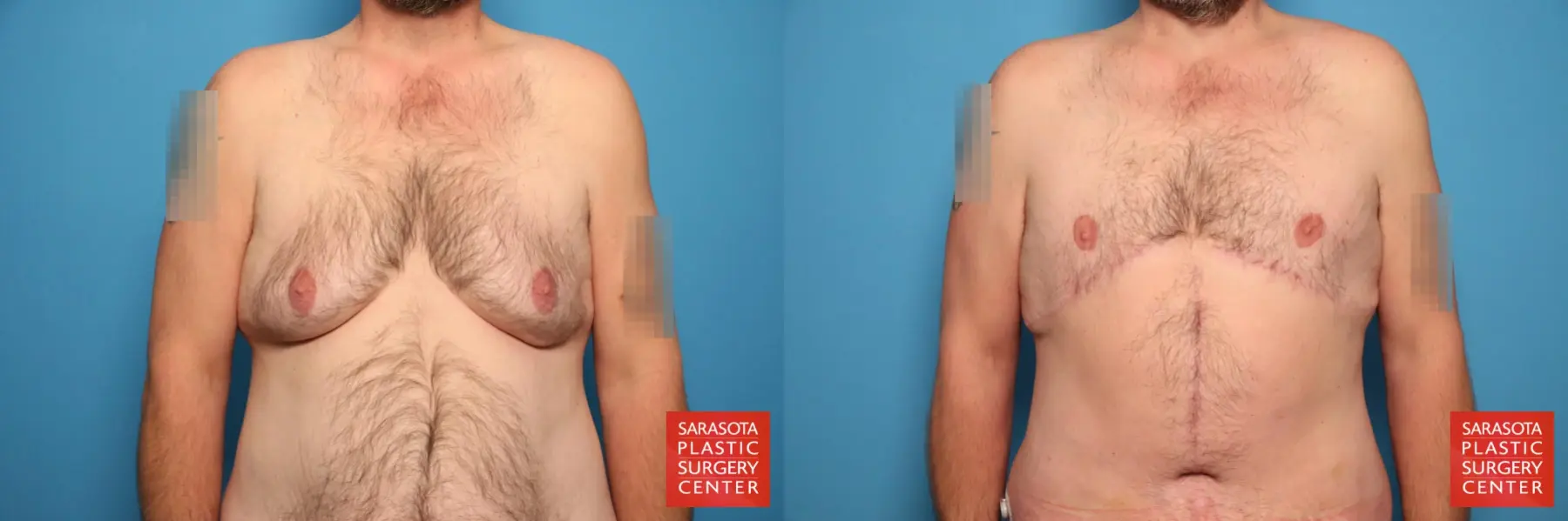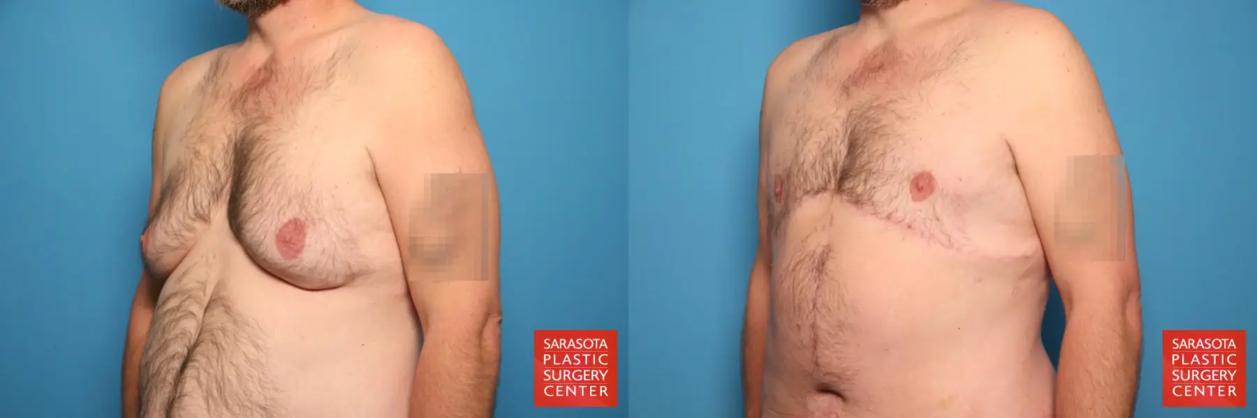 41-year-old male that was concerned with his enlarged male breasts after massive weightloss. The patient chose to undergo a Gynecomastia resection with free nipple grafts, liposuction to the chest, flanks, lateral chest, mons pubis and Fleur-de-lis abdominoplasty.