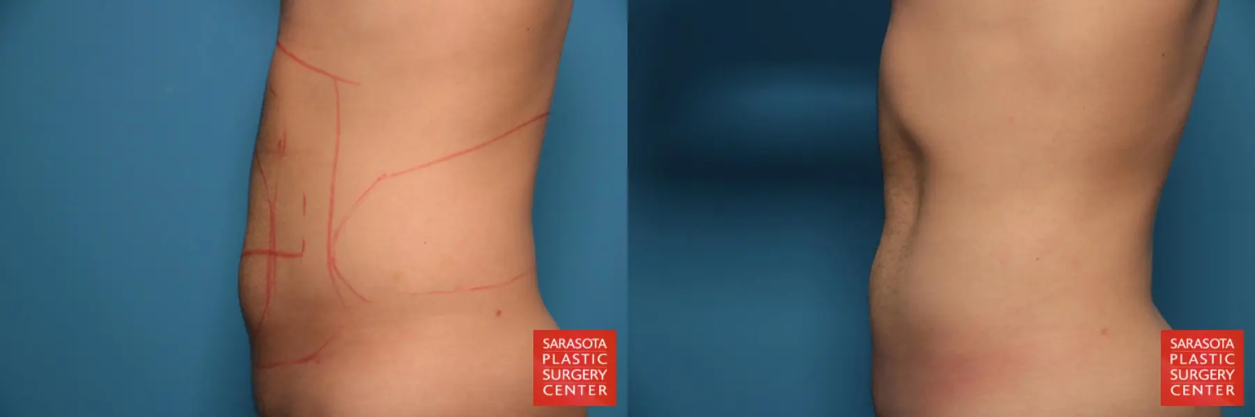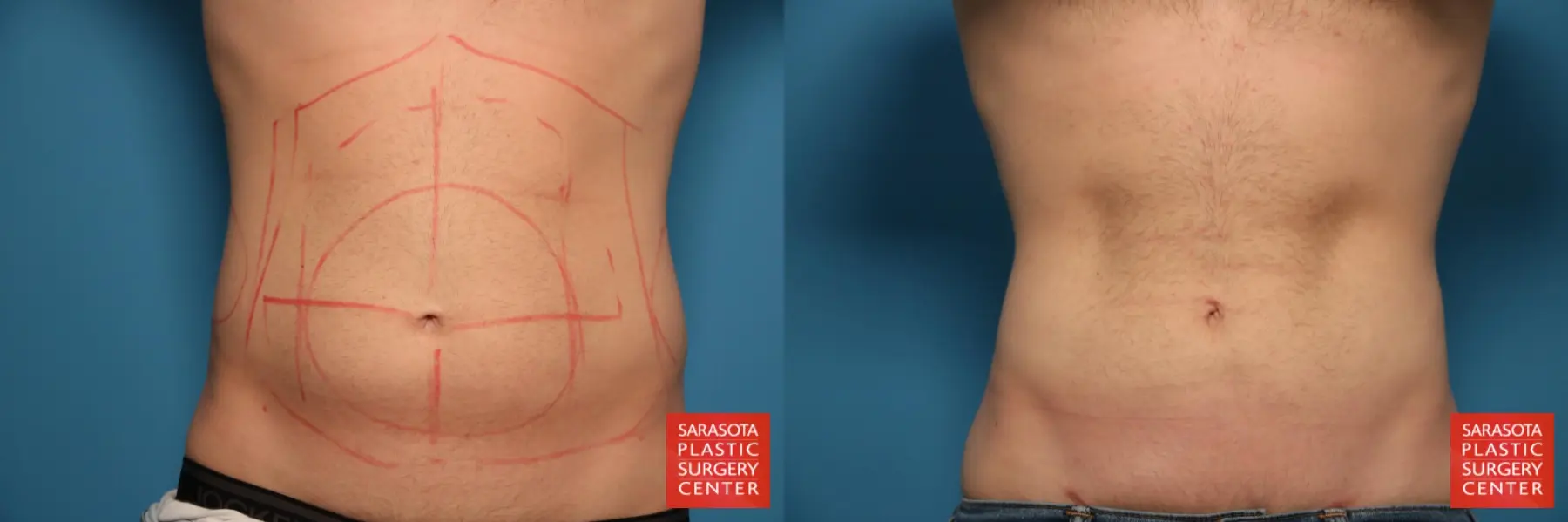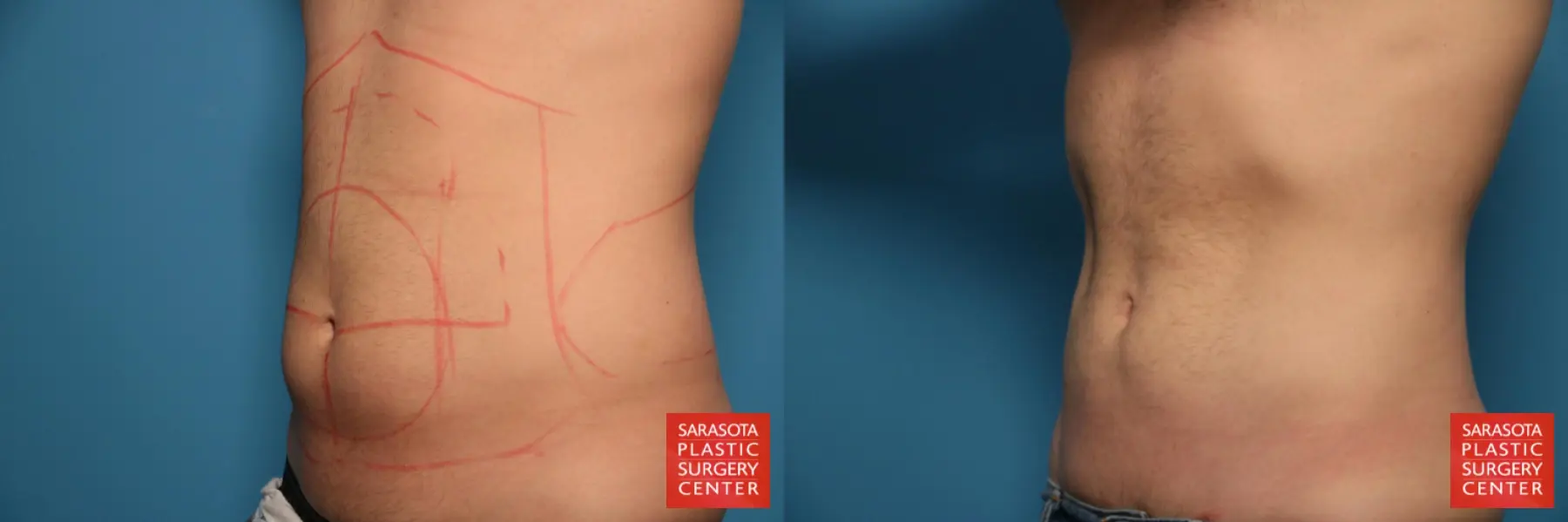 27-year-old male that had lost ~40lbs and was still concerned with excess fat of his abdomen and flanks. To address his concerns he chose to undergo liposuction of his full abdomen and flanks.