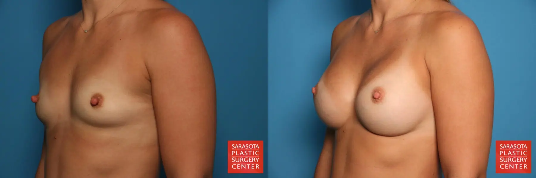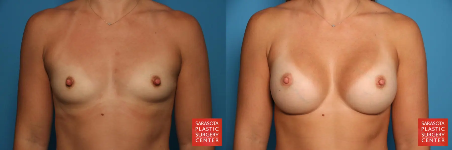34 year old mother of three that was concerned with her small breasts and prominent nipples. She chose to undergo a bilateral subpectoral breast augmentation using Natrelle Inspira Silicone Implants Style SSF 385cc and bilateral nipple reduction (setback).