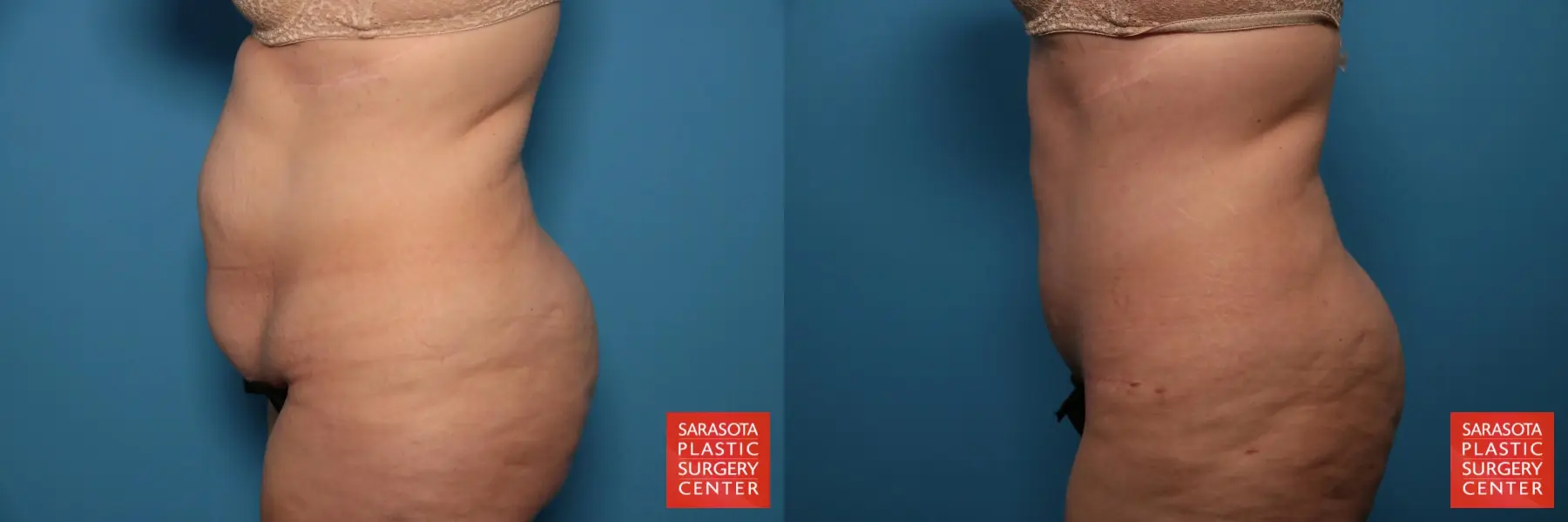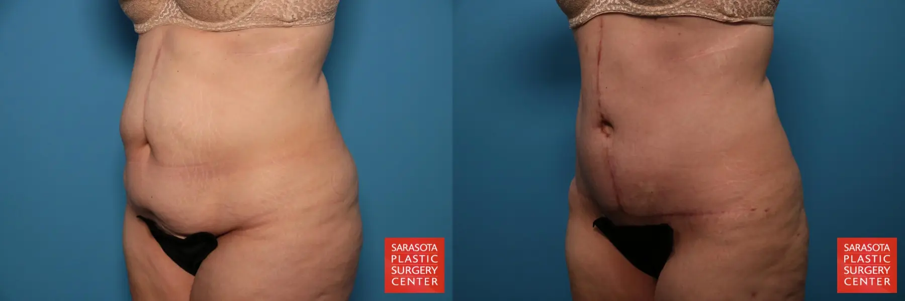 41-year-old female that was interested in body contouring. The patient lost over 150lbs after having gastric bypass. She had complications from her gastric bypass and needed an open upper midline procedure. She consulted with Dr. Engel and chose to undergo a Fleur de Lis Abdominoplasty given the degree of laxity and upper midline scar. She also had liposuction of her lateral and medial thighs. Post operative photos were taken at 3 months so the scars are still dark but will continue to fade over time.