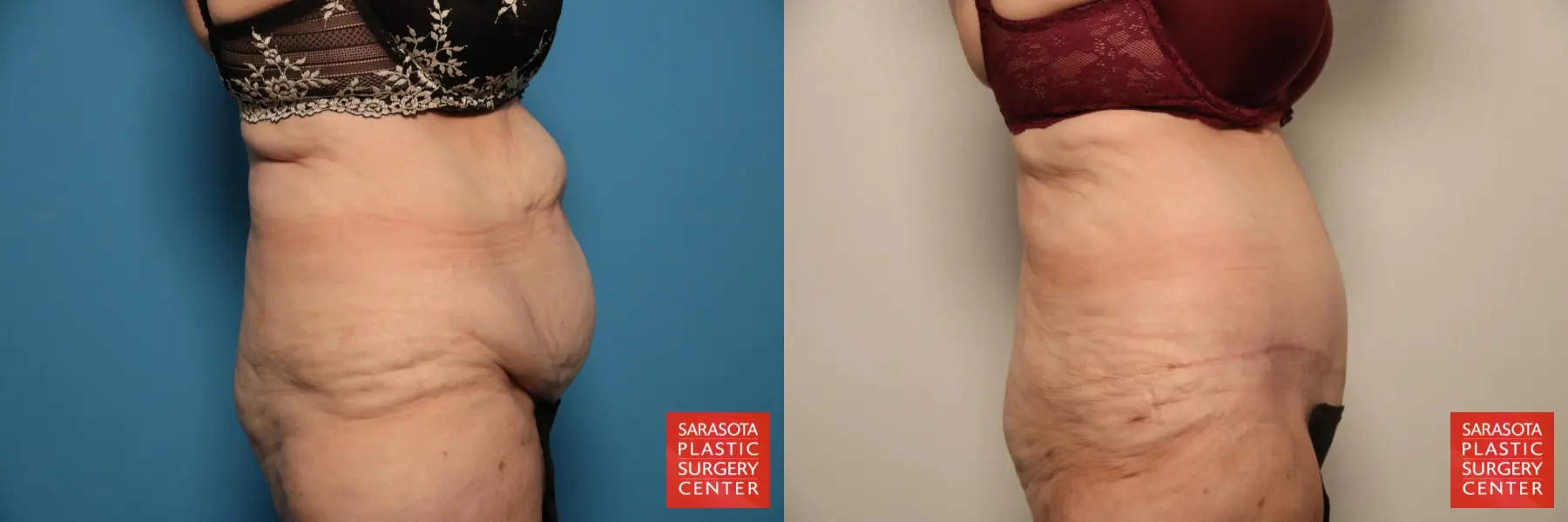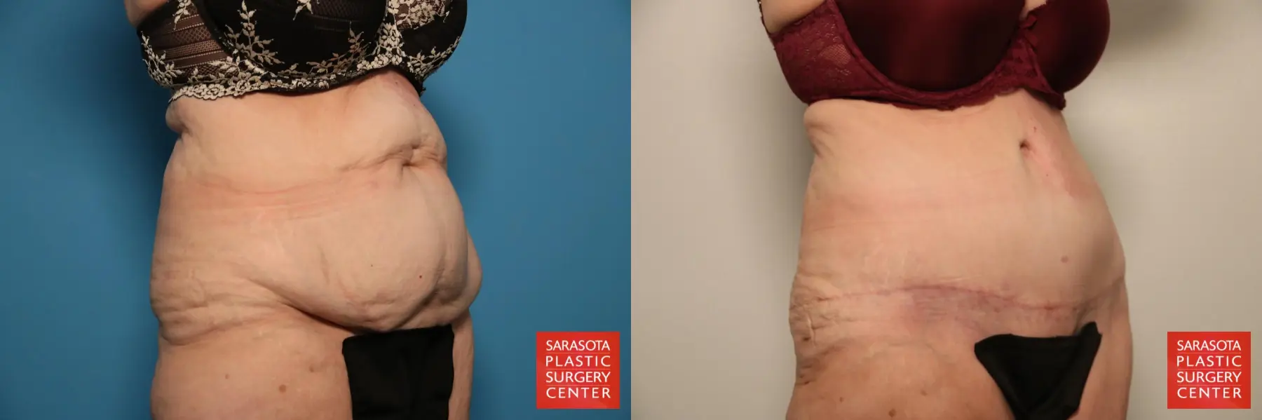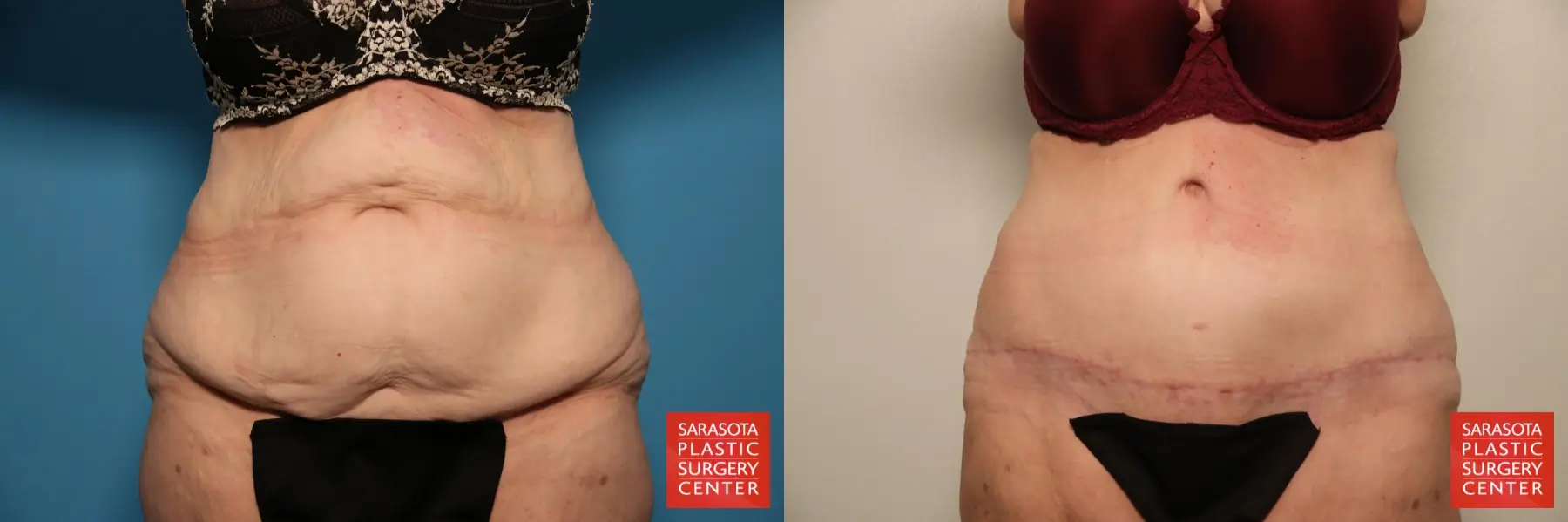 67-year-old female that was concerned with her excess abdominal skin and excess abdominal adipose tissue. To address her concerns she chose to undergo an abdominalplasty with liposuction to her flanks and lateral thighs.