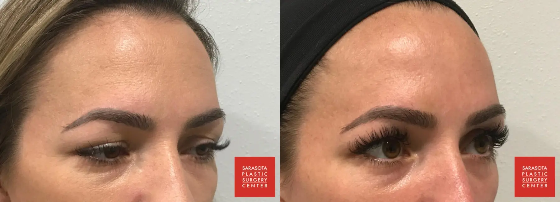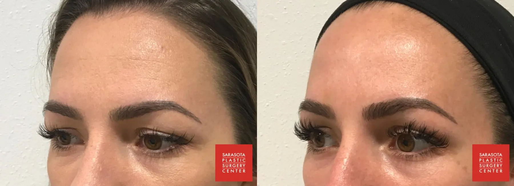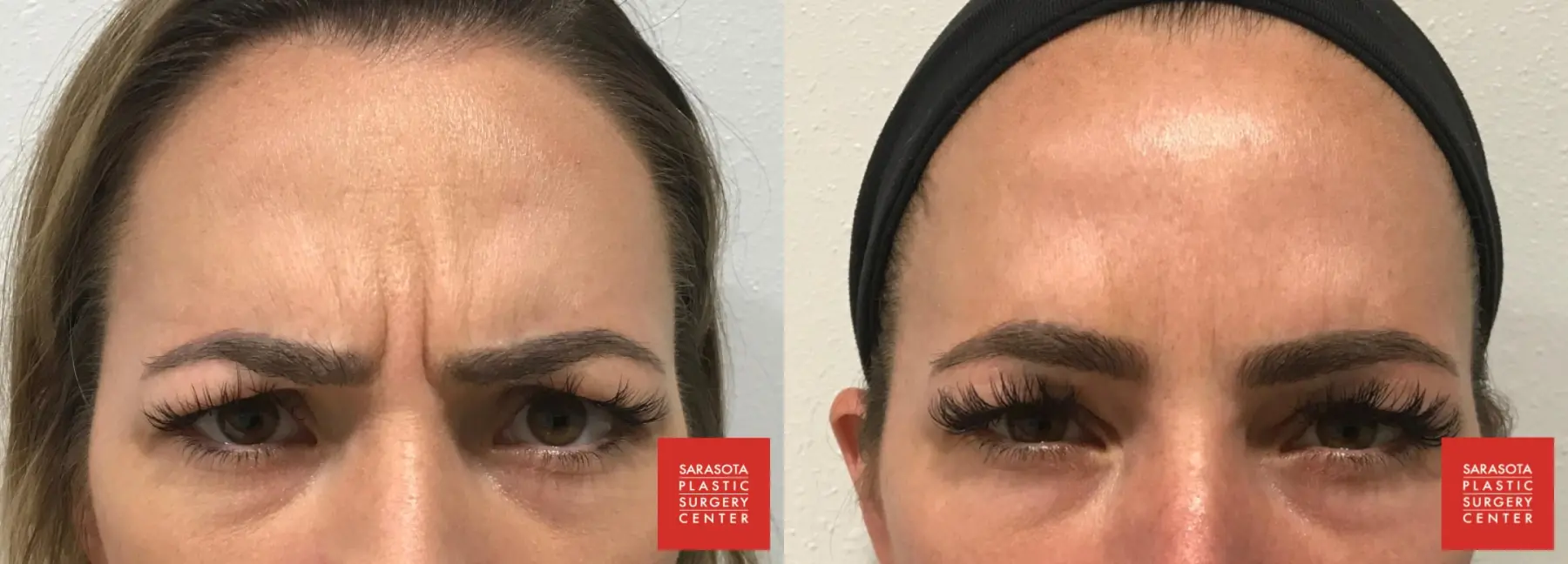 32-year-old female that was concerned with facial wrinkles. She chose to undergo a Botox treatment to the forehead and glabella.